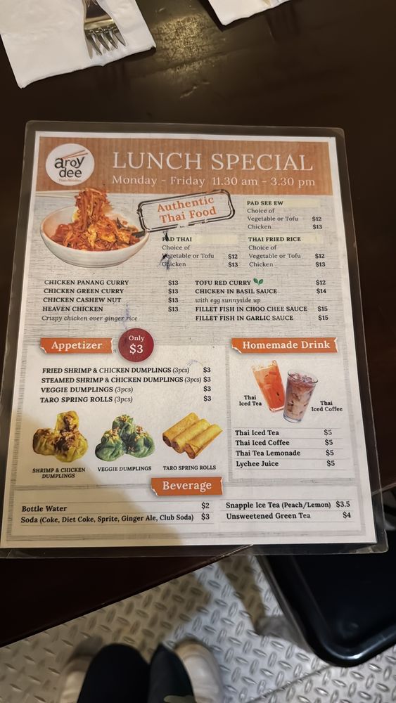 Aroy Dee Thai Kitchen Menu